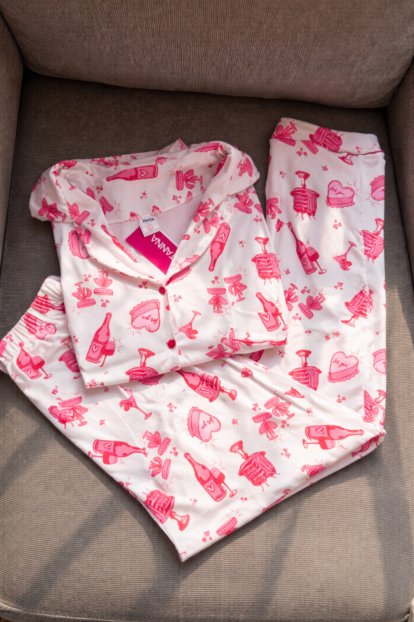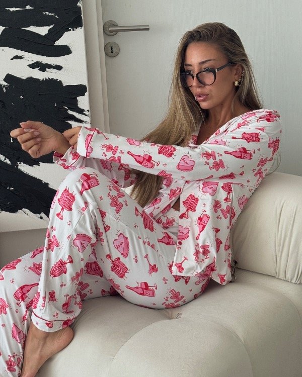 Un pijama delicado y femenino Perfecto para disfrutar momentos de descanso con comodidad y una vibra romántica.