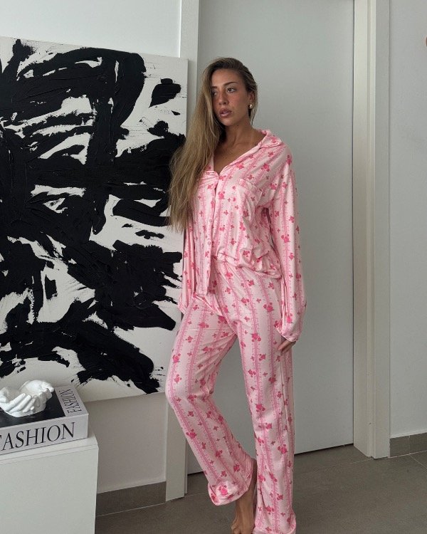 Un pijama delicado y femenino Perfecto para disfrutar momentos de descanso con comodidad y una vibra romántica.